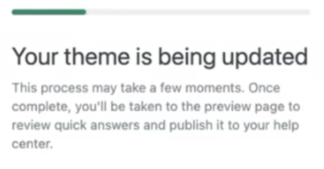 After the theme update is complete, you’ll be given the chance to preview the results and either publish, or deselect this feature. If you deselect the feature, your help center end user experience will remain the same as it was before you updated the theme.