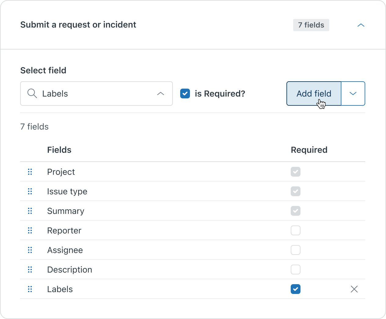 4. In the Manage issue section, select the field you'd like to add in the Select field menu, then click Add field.