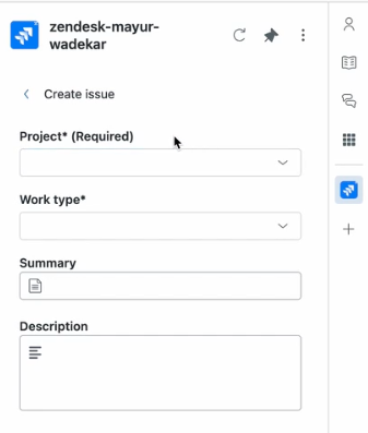 When creating a Jira issue from a Zendesk Support ticket, agents are asked to enter details about the issue being reported in the Create issue form.