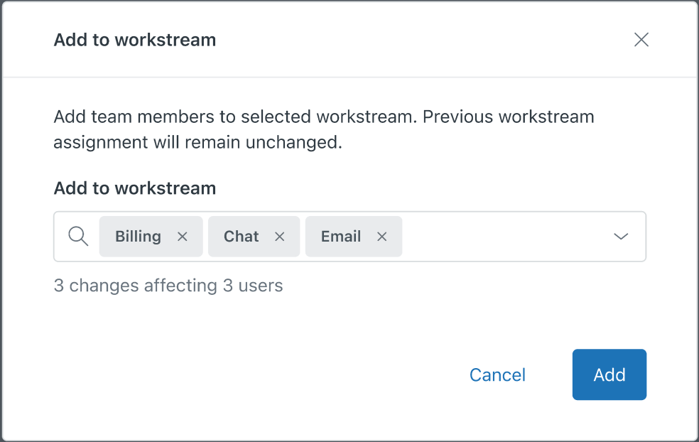 - Select one or more workstreams to add the selected users to.