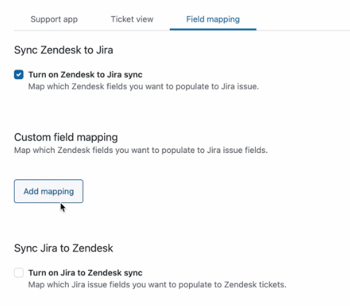 - To turn on field sync from Jira to Zendesk, select Turn on Jira to Zendesk sync.