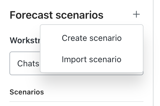 Forecasting in the navigation bar, then select Forecast scenarios. - Under Workstreams, use the drop-down menu to select a workstream.