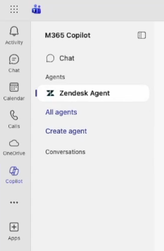 Admins can refer to Setting up the Zendesk agent for Microsoft 365 Copilot for details on setting up the Zendesk agent. For more information on Copilot, see the Microsoft 365 Copilot documentation.