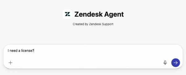 If your Zendesk admin has activated help center search for the Zendesk agent, you can search help center articles by typing a phrase or question.