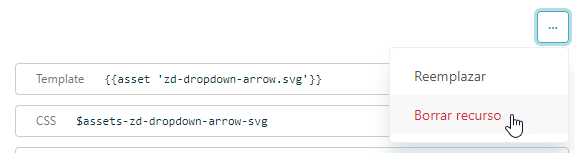 Puede hacer referencia a un recurso ya cargado en el archivo style.css del tema o en sus plantillas. En style.css, se usan las variables de la ruta de acceso al recurso proporcionadas por Guide. En las plantillas, se usa el helper de recursos de Curlybars.