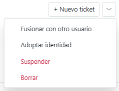 Después de reasignar los tickets de un agente y bajar de categoría su rol, debe suspender la cuenta del agente para evitar que este inicie sesión en su cuenta como un agente. Puede suspender la cuenta de un agente inmediatamente después de bajarlo de categoría. Después de bajar la categoría del rol del agente y suspender su cuenta, este solo podrá acceder a los tickets en los que esté asignado como solicitante.