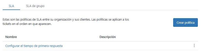 Si desea más detalles sobre cómo se ordenan las políticas, consulte Ordenar las políticas de SLA. Para ver qué políticas se han aplicado a un ticket y en qué orden, consulte Ver las políticas de SLA que se han aplicado a un ticket.