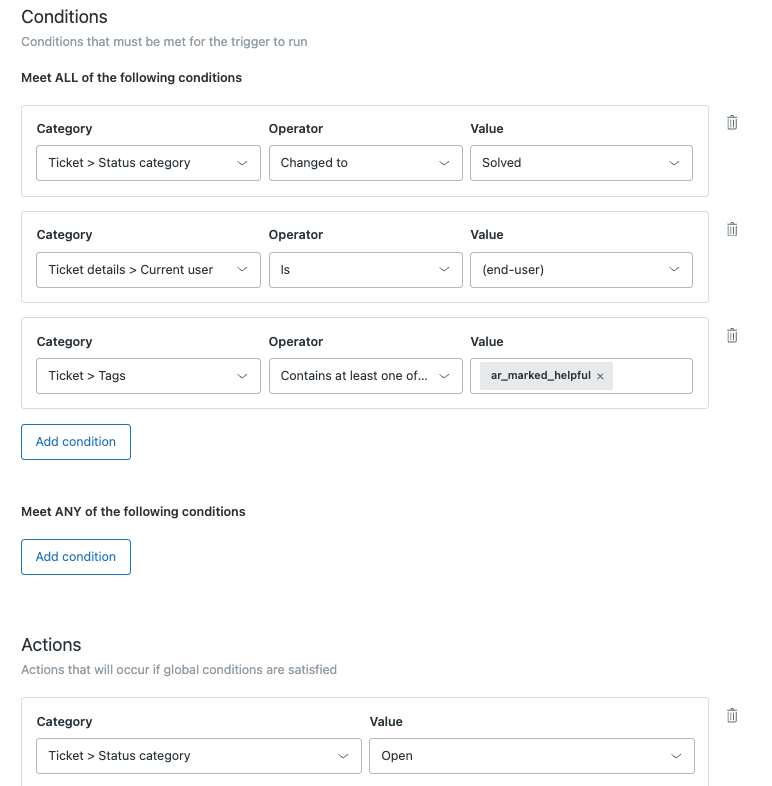Cree un disparador para reabrir los tickets que los usuarios finales marcan como resueltos.