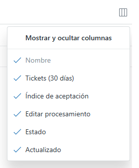 ) para elegir las columnas que desea mostrar. - Haga clic para seleccionar o deseleccionar las columnas que desea mostrar u ocultar de la lista.