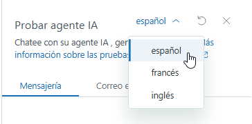 - Para cambiar el idioma del agente IA, utilice el menú desplegable de idiomas.