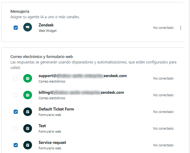 - Los canales determinan dónde puede interactuar con los clientes el agente IA.