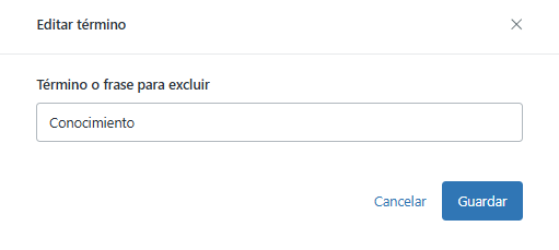 Si tiene que actualizar o cambiar un término excluido, puede editarlo directamente en la lista de términos excluidos.