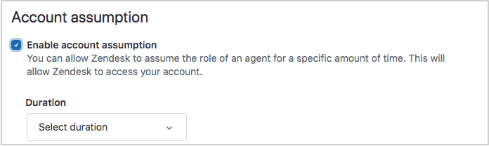 Si vous avez besoin d’aide pour résoudre certains problèmes, vous pouvez autoriser Zendesk à assumer le rôle d’un agent pendant une durée spécifique. Cela n’affecte pas votre licence ni le nombre de licences d’agent disponibles.
