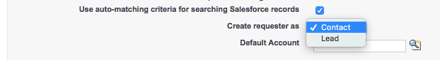 - Utilisez ensuite le menu déroulant Create requester as (Créer le demandeur en tant que) pour choisir de créer le demandeur en tant que contact ou piste :