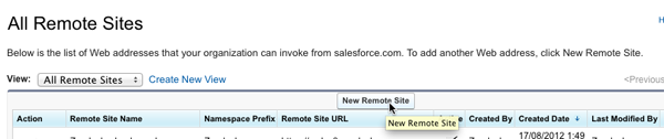 - À la page All Remote Sites (Tous les sites distants), cliquez sur le bouton New Remote Site (Nouveau site distant).