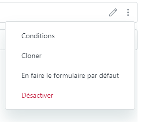 - Déplacez le curseur sur le formulaire de ticket que vous voulez utiliser comme formulaire de ticket par défaut, puis cliquez sur l’icône de menu (