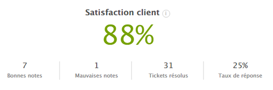 Sous votre score, vous pouvez voir le nombre total de bonnes notes, de mauvaises notes et de tickets résolus pour la période du rapport.
