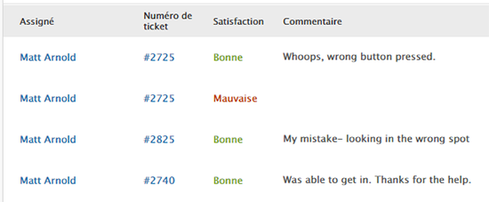 N’oubliez pas, les notes sont pour tous les tickets notés pendant la période du rapport (quel que soit leur statut).