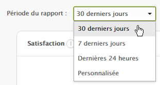 ) dans la barre latérale, puis sur l’onglet Satisfaction. - Sélectionnez une période du rapport dans le menu déroulant.