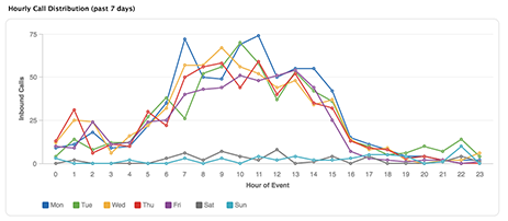 Distribution horaire des appels (7 derniers jours)