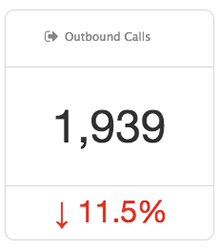 Appels sortants avec évolution en pourcentage