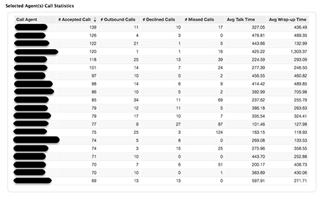 Tableau de statistiques des appels des agents