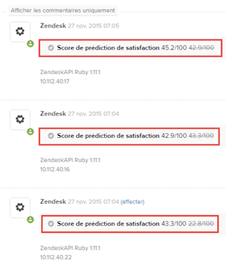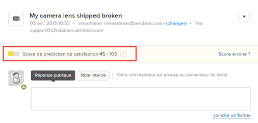 Les scores de prédiction de satisfaction sont affichés dans Zendesk Support à plusieurs endroits.