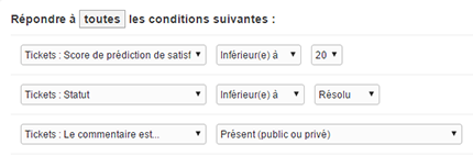 Pour que les scores de prédiction de satisfaction aient un impact réel sur les notes globales de satisfaction client, il faut incorporer ces informations à vos processus de travail, en les utilisant comme conditions intégrées dans les règles de gestion pour générer des vues, des automatismes et des déclencheurs.