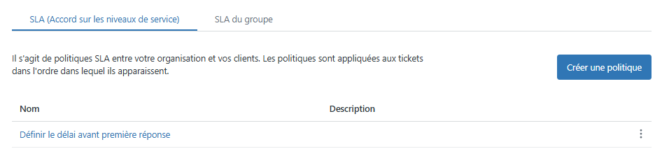 Avec les éditions Enterprise, vous pouvez aussi définir des SLA de groupe. Les SLA de groupe sont des politiques indépendantes entre vos équipes internes qui définissent un objectif de durée de propriété pour un groupe.