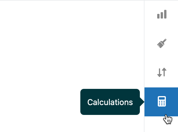 - Dans le créateur de rapports, cliquez sur l’icône Calculs () dans la barre latérale droite.