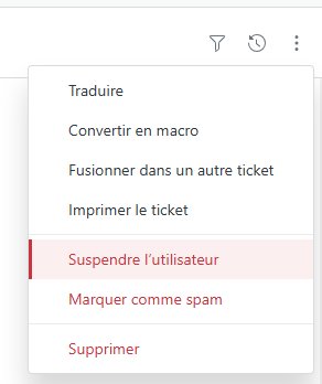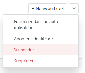 Les agents peuvent suspendre un utilisateur directement dans l’interface du ticket concerné pendant une conversation en cours.