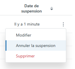Pour mettre à jour un utilisateur suspendu dans la liste des utilisateurs suspendus