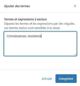 Pour ajouter un mot ou une expression à la liste des termes exclus