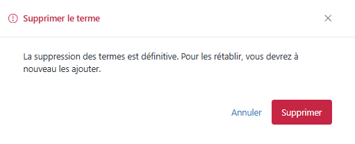) pour le terme que vous voulez supprimer, puis sélectionnez Supprimer. - Cliquez sur Supprimer.