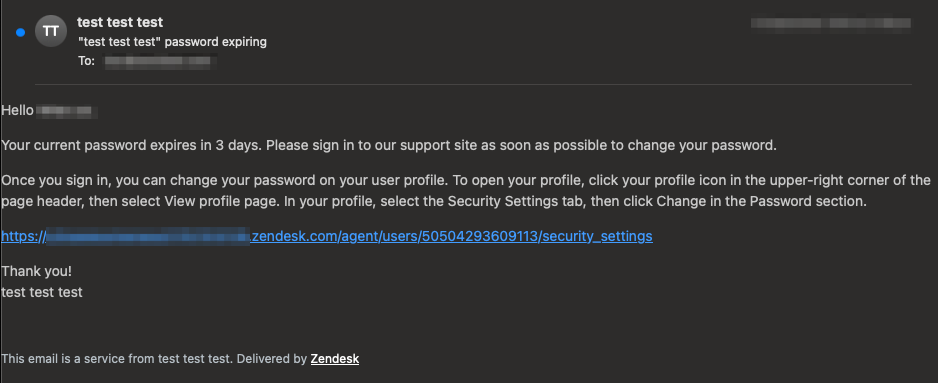 Quand une sandbox est créée, Zendesk importe des utilisateurs à partir de votre compte de production, y compris leurs dates de création de mots de passe d’origine. Cependant, la sandbox applique ses propres politiques de sécurité, qui peuvent être différentes de celles de vos paramètres de production.