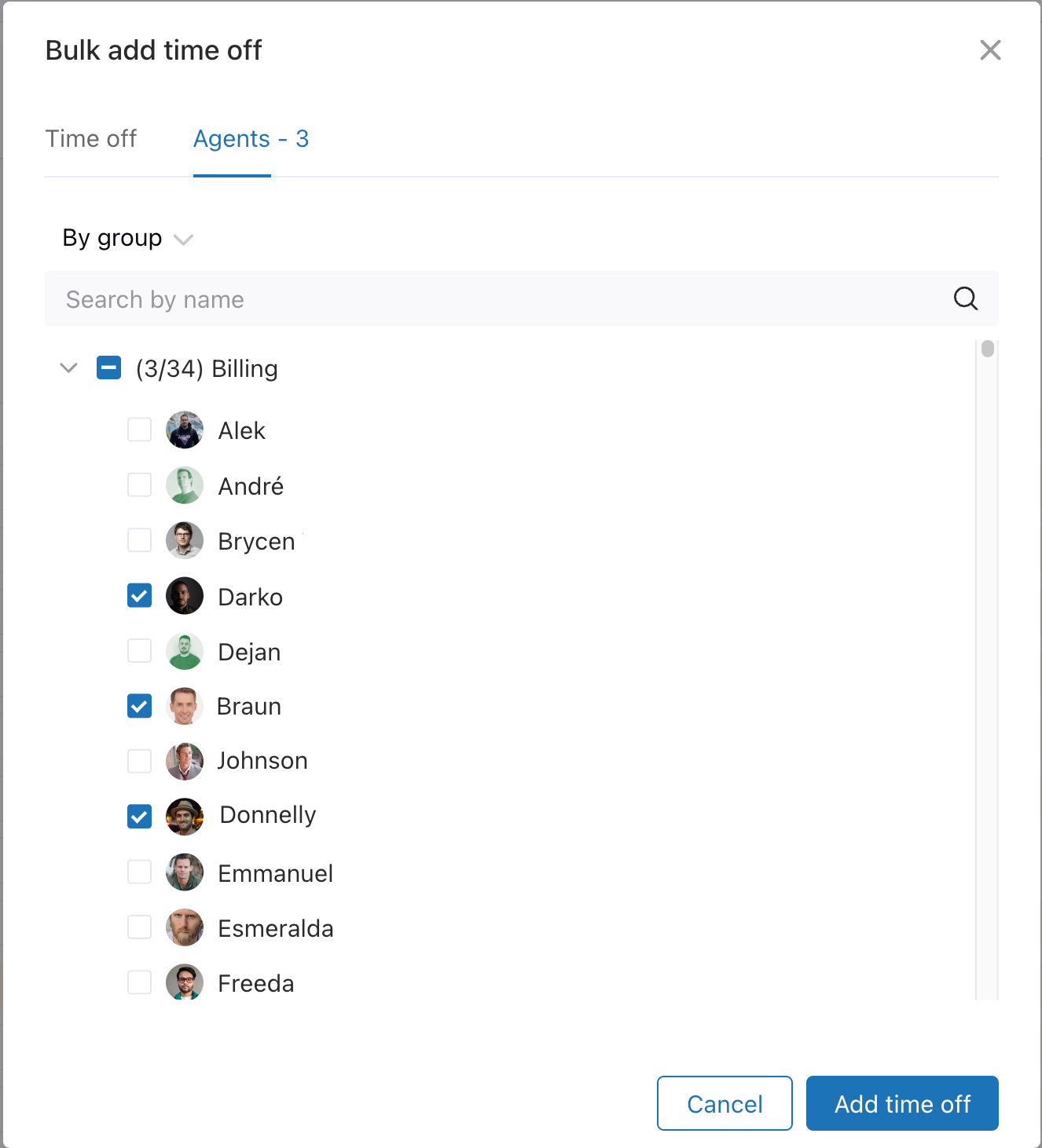 Ad esempio, puoi selezionare tutti gli agenti se stai pianificando un permesso per una vacanza.
