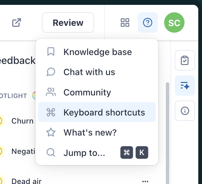 Scopri come accedere all’elenco delle scorciatoie da tastiera disponibili in Zendesk QA.