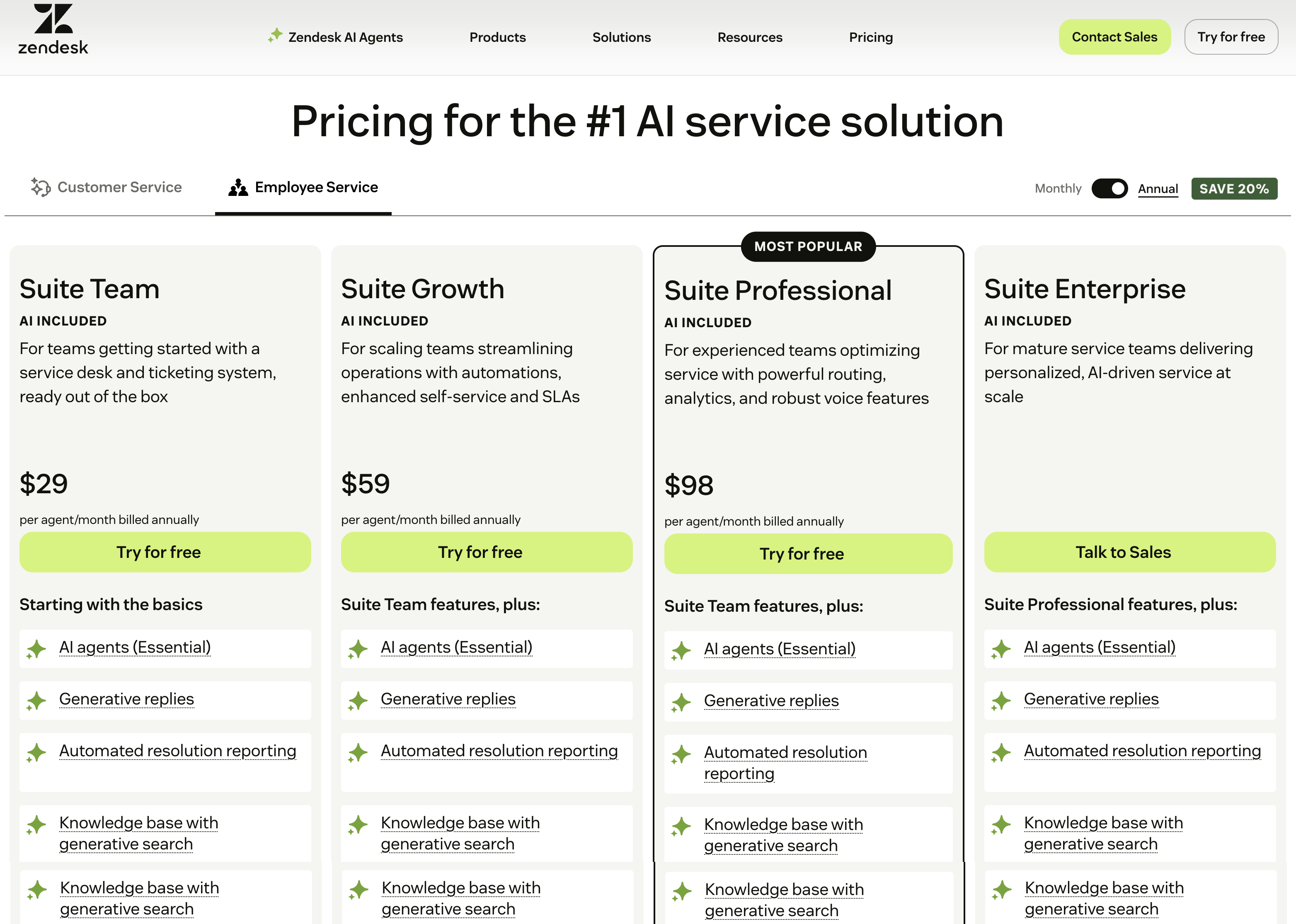 - Apri la pagina dei prezzi Zendesk per Suite Servizi per i dipendenti.