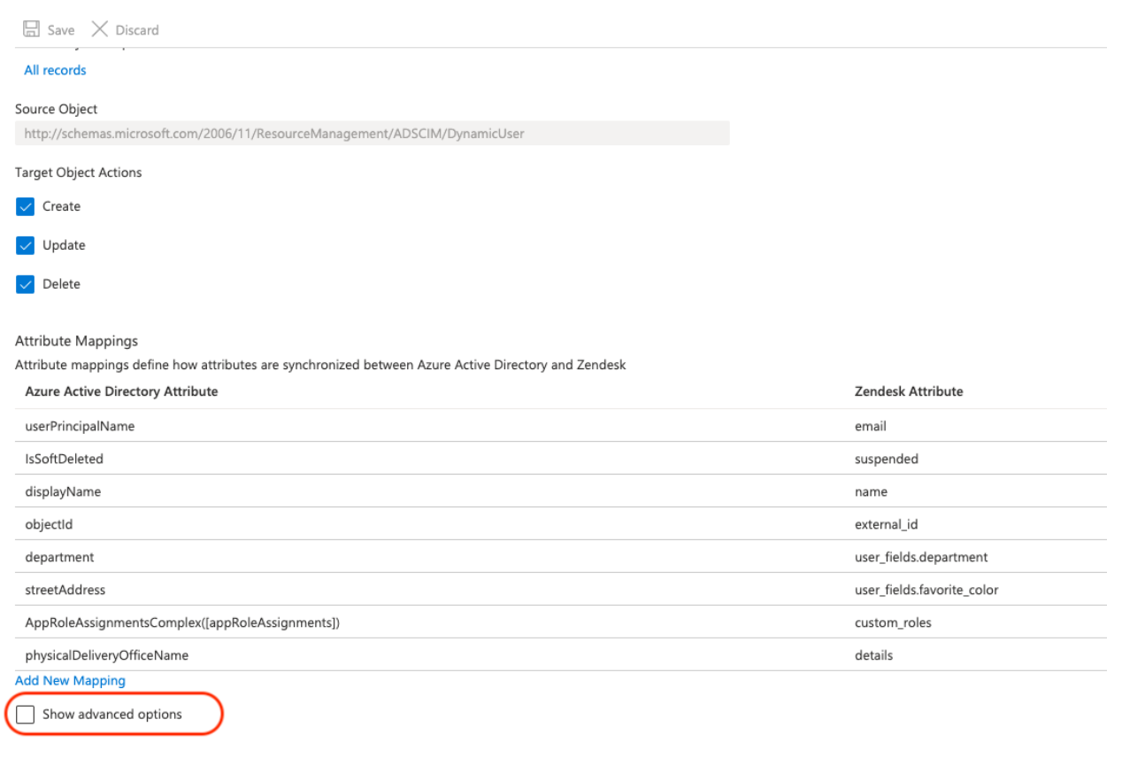 Per aggiungere un campo utente personalizzato all’elenco di attributi Zendesk che possono essere selezionati durante la modifica della mappatura degli attributi in Provisioning automatico di Azure: