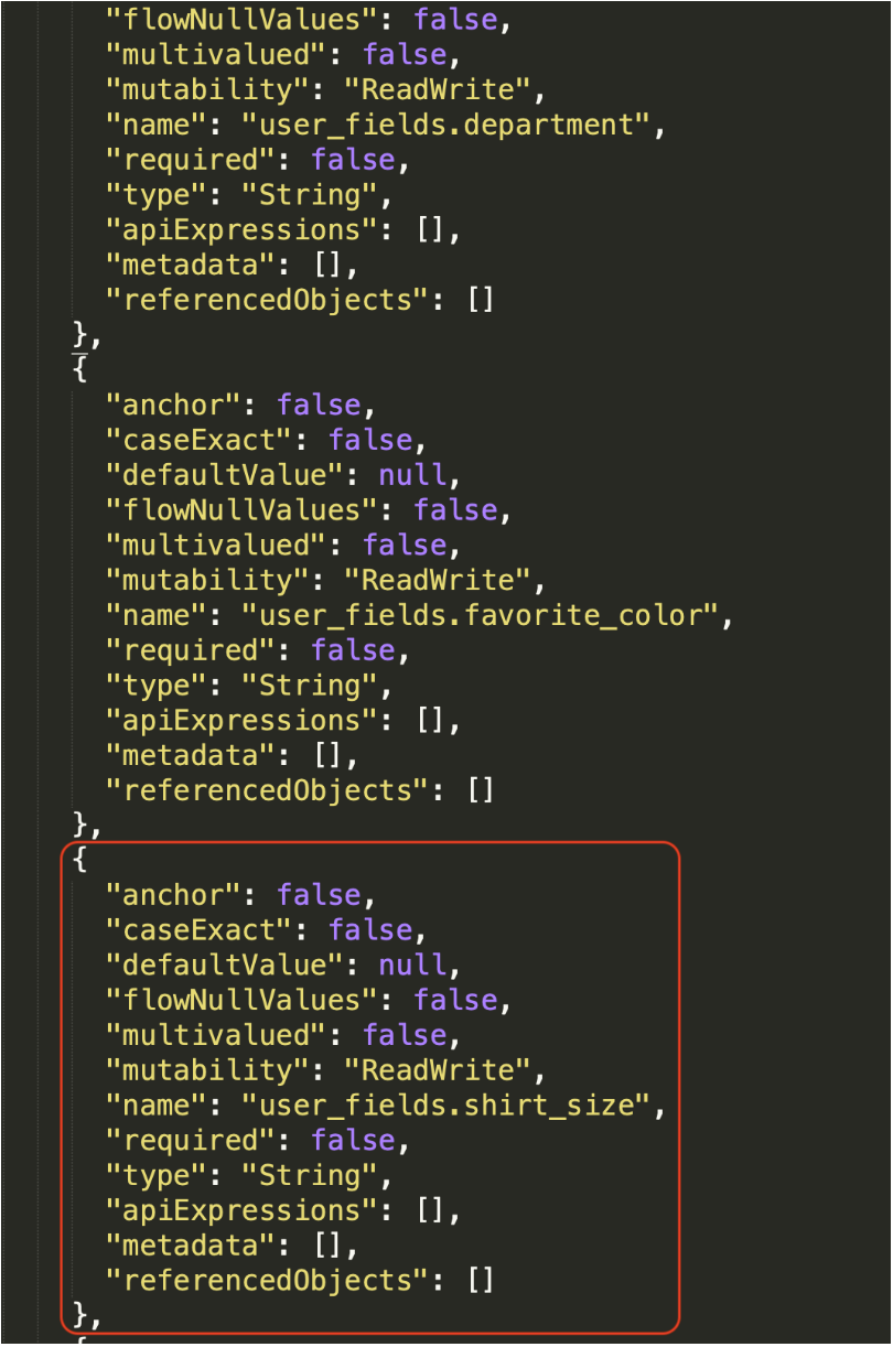 - Apri il file di schema in un editor di testo normale e cerca user_fields.department. Se non hai già mappato questo attributo, potrebbe esserci un risultato, forse due.