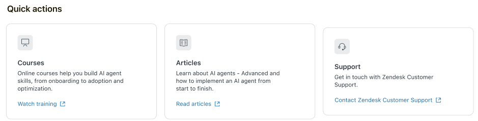 • Report: Ti porta al dashboard di Analytics, dove puoi analizzare le metriche delle prestazioni degli agenti AI . Consulta Analisi delle prestazioni agenti AI avanzata con il dashboard di Analytics.