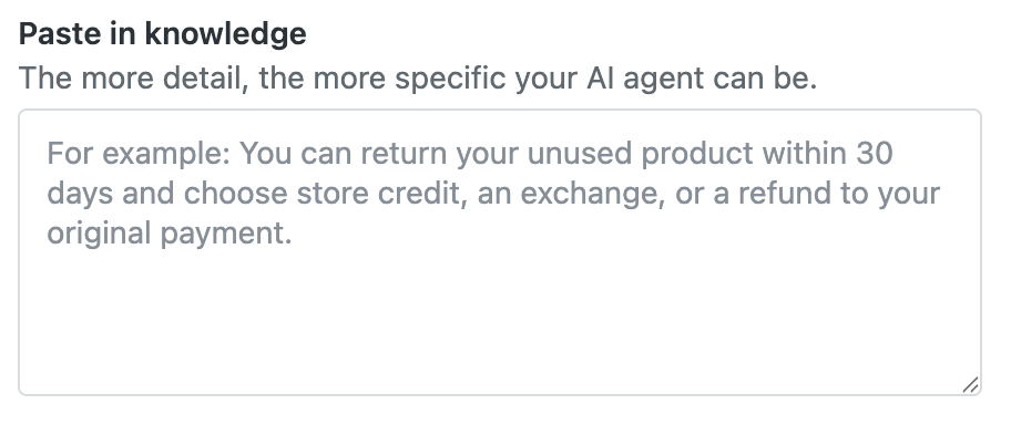 La configurazione guidata usa le informazioni fornite per creare un articolo nel centro assistenza. L’ agenti AI fa riferimento al contenuto di questo articolo per rispondere alle domande dei clienti e di altri utenti finali. Guarda l’esempio qui sotto.