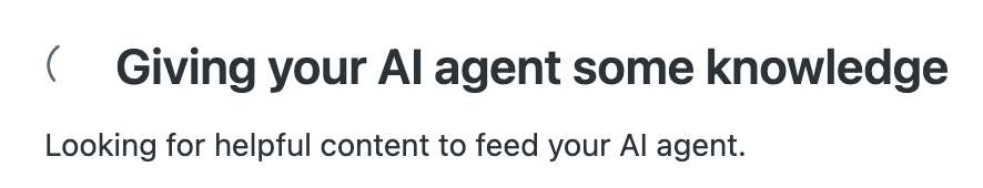 Man mano che la procedura guidata crea informazioni per il tuo agente, vengono visualizzati alcuni messaggi di avanzamento, incluso un elenco di URL di siti web che l’ agenti AI userà. Per ulteriori informazioni su come fornire informazioni agli agenti AI , consulta Strategie per la creazione di contenuti del centro assistenza per AI.