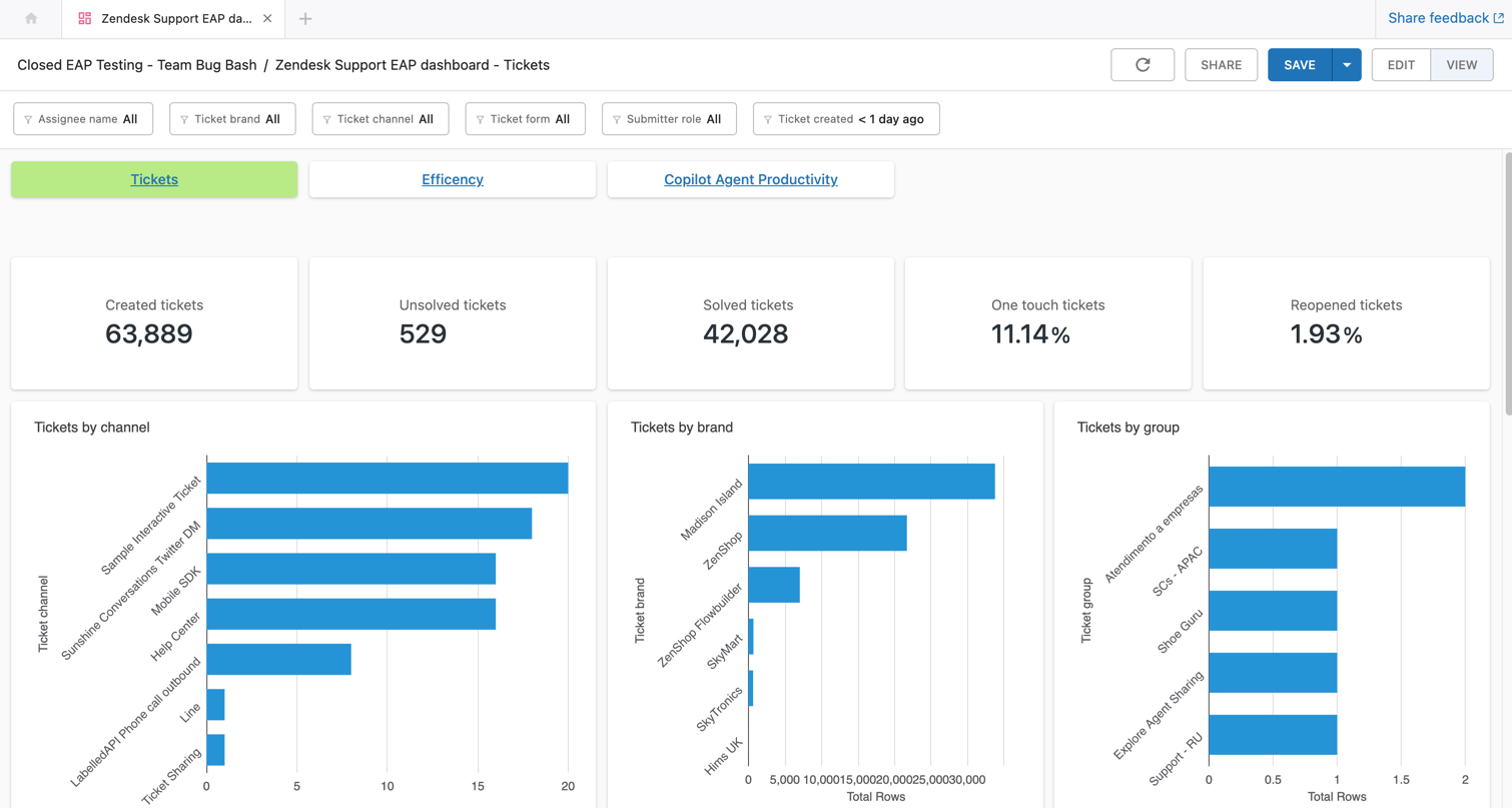 - Dataset: I dati che analizzi. Per questo programma EAP, Analyst Copilot include due dataset, i ticket Support e lo snapshot giornaliero degli agenti.