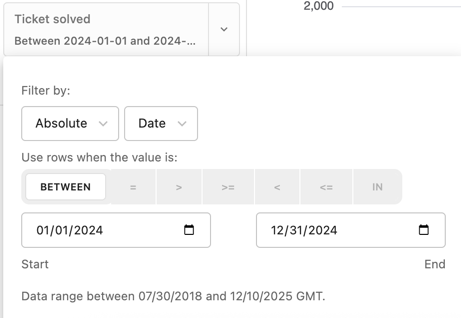 - Set di filtri: Un elenco di valori separati da virgole che possono essere usati nei filtri globali e di altro tipo; ad esempio, un elenco di ID ticket, assegnatari o gruppi.