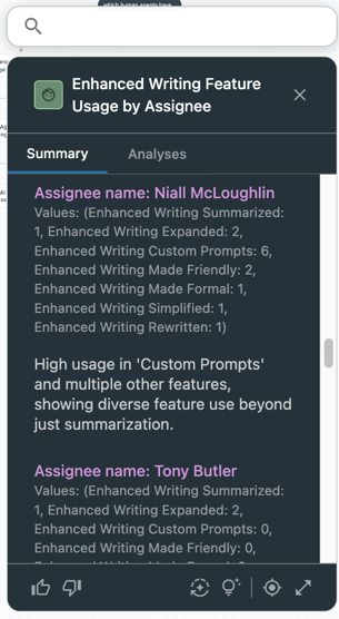 - Domande e risposte in linguaggio naturale: Poni domande in un linguaggio semplice. Analyst Copilot trova i ricordi migliori per rispondere alla tua domanda.