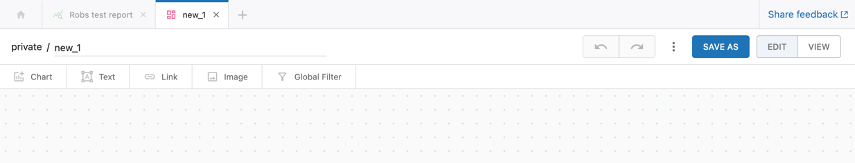 Dopo aver creato un dashboard, puoi salvarlo in modo da poter continuare a lavorarci in un secondo momento.