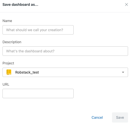 - Progetto: Dal menu a discesa, seleziona il progetto in cui salvare il dashboard.