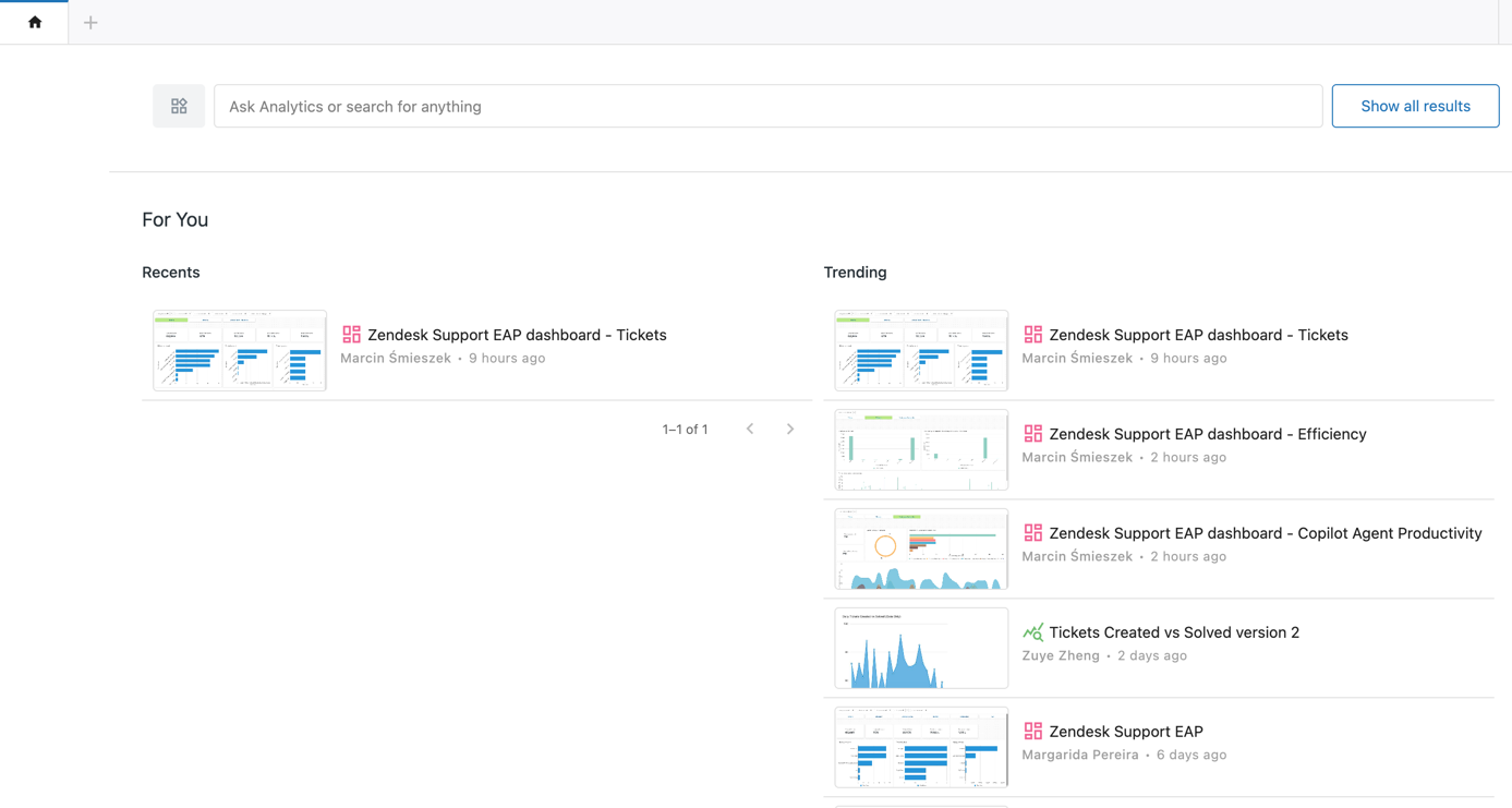 Il programma EAP Analyst Copilot (con tecnologia HyperArc) si basa sulle funzionalità di analisi di Zendesk per offrirti un’esperienza di analisi potente, intelligente e facile da usare. Il programma EAP offre un metodo basato sull’intelligenza AI per conversare con i dati e produrre report.