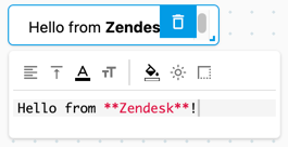 - Nella casella di testo, inserisci il testo da visualizzare nel dashboard. La casella di immissione del testo supporta la formattazione Markdown. Ad esempio, puoi inserire "Hello from **Zendesk**" per visualizzare "Hello from Zendesk".